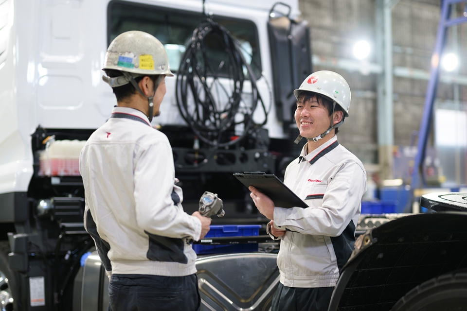特殊車両の修理では、決まった正解があるわけではありません。車両の構造や使われ方、これまでの履歴などを一つひとつ確認しながら、その車両に合った修理方法を考えていきます。 修理フロントの仕事では、自分一人で判断するのではなく、工場や他部署と情報を共有し、相談しながら進める場面が多くあります。その中で、「この進め方が一番よさそうだ」と整理できたときには、仕事の手応えを感じます。また、修理の工程を考え、計画どおりに進み、無事に納車を迎えられたときには、大きな達成感があります。工場で修理をしていた頃とは違い、車両全体や修理の流れを俯瞰して見られるようになり、自分の視野が確実に広がっていると感じています。