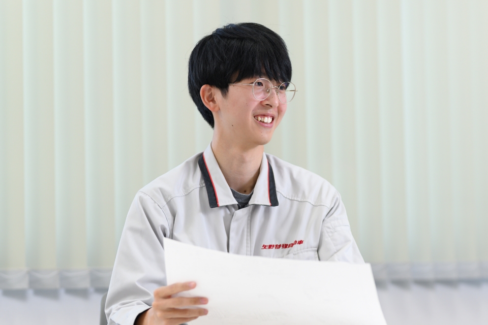 オーダーメイドのものづくりのため、設計内容は毎回異なります。これまでの実績や基本となる構造を踏まえながら、その車両にとって最適な形を一台ずつ考えていきます。 図面を描くだけでなく、製造しやすさや全体のバランスも考える必要があるため、設計は多くの部署と関わる仕事です。周囲とやり取りを重ねながら形にしていく点が、この仕事の特徴だと感じています。