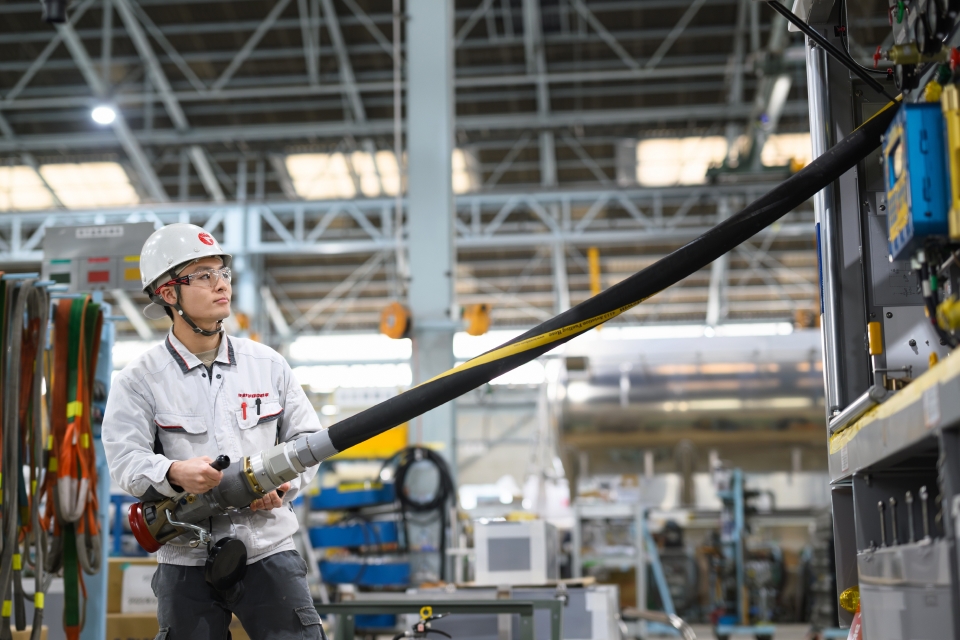 航空機給油車の製造工程はさまざまあり、現在は納車前の仕上げ工程を担当しています。もともと、いろいろな作業に挑戦したいと思っていましたが、実際に配属されると、想像していた以上に一つひとつの作業に高い精度が求められる仕事だと感じました。