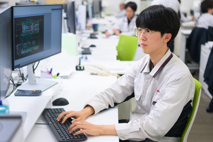 お客さまの要望に基づいた車両の設計・開発を行います。CADや解析ソフトを活用して設計を行い、ニーズを的確に反映するだけではなく、機能性向上や安全性確保を図り、高性能な車両を具現化していきます。