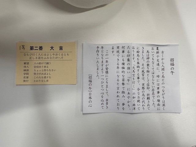 招福の午 イベント 2026.01.06 イベント 安全 毎年恒例の安全祈願を宗像大社で行ってまいりました。 弊社社員のHさんが「福みくじ」を引いたらなんと大社賞が大当たり! 特大の白馬を持って帰ってきてくれて、新年早々みんな“パカッ”とした笑顔になりました。 志したことが“ウマ”い具合に進み、実り多き年となりますように! 小さいさんチーム Prev next 一覧へ戻る ご挨拶 イベント ウイング車 サービス タンクローリ トレーラー 冷凍車 安全 技あり動画 新商品 省力化 輸送品質